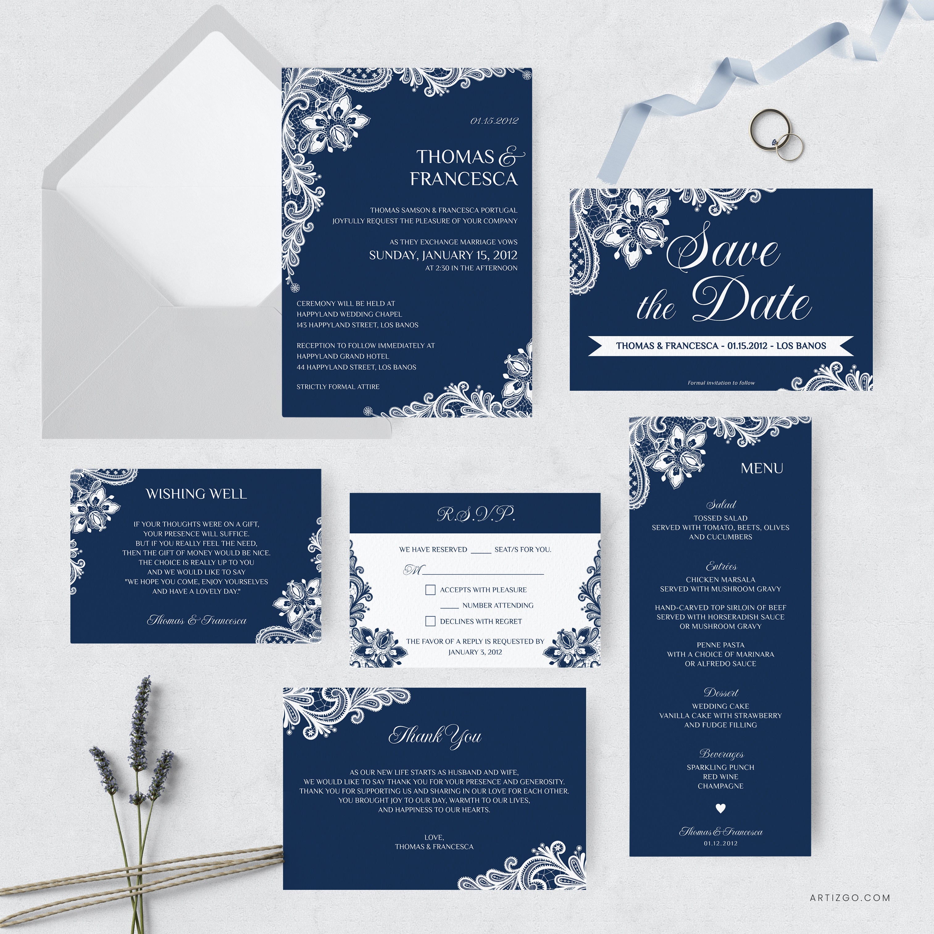 Editable Royal Lace Romance Wedding Printable Bundle TVW167