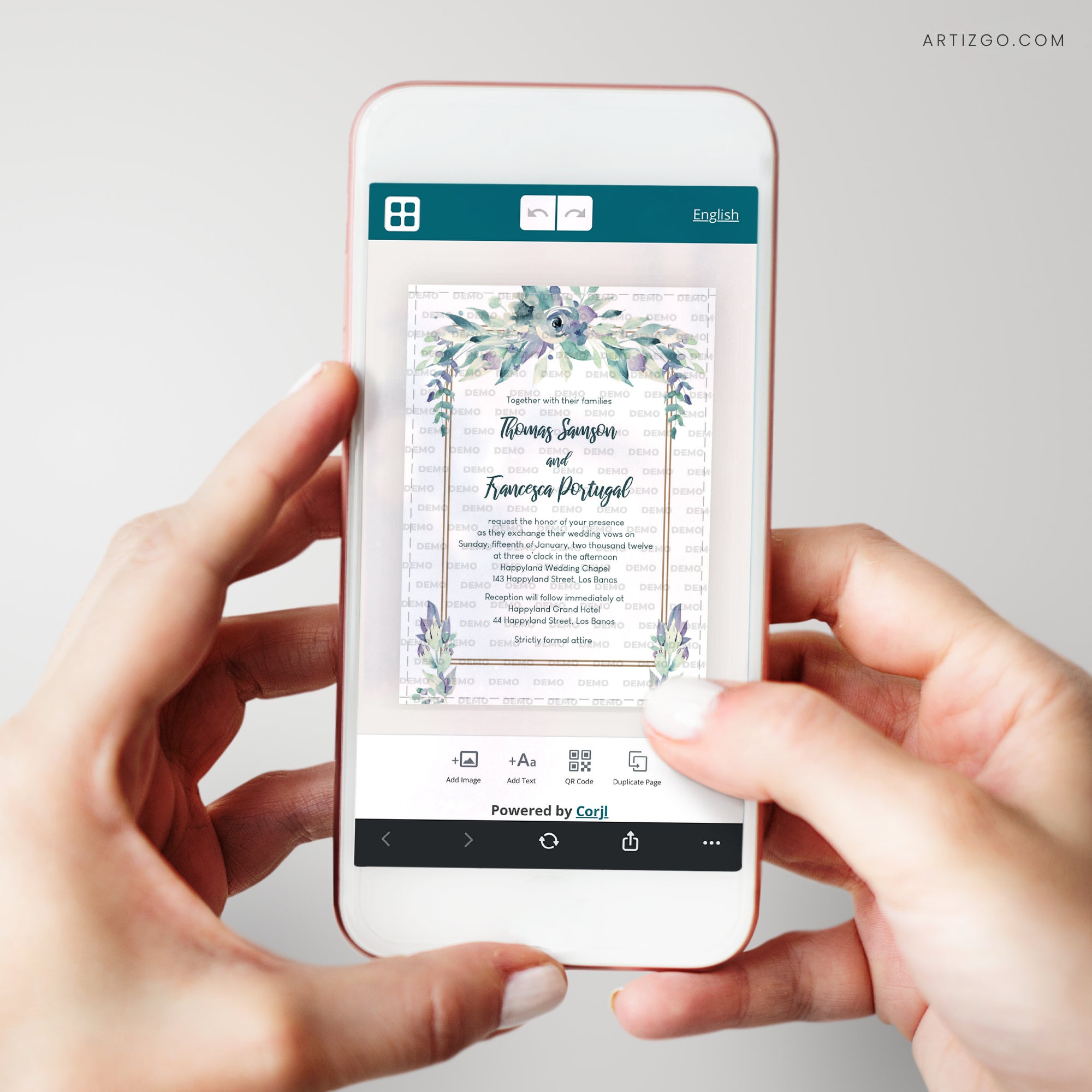 EDIT YOURSELF on your PHONE or computer using the link Corjl.com will email you right after purchasing! No special software needed! (Basic editing on phone, Advanced editing on computer.)